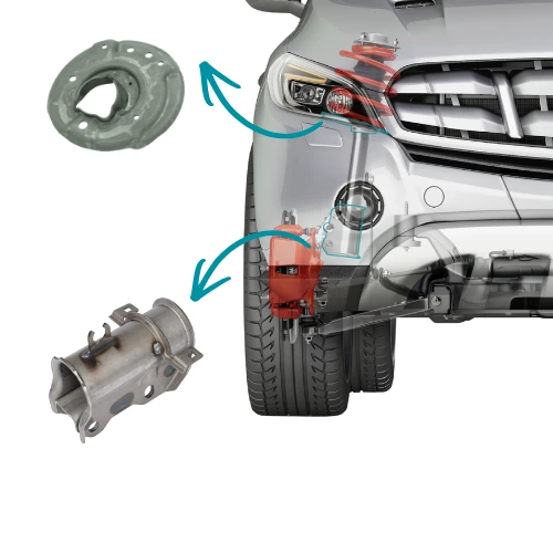 Spring seats and damper brackets are manufactured as load-bearing components requiring precise geometry and controlled forming and welding processes. Structural integrity and dimensional accuracy are ensured through dedicated tooling, fixture design, and process validation. Static strength and durability performance are verified under representative driving loads to support long-term suspension stability.