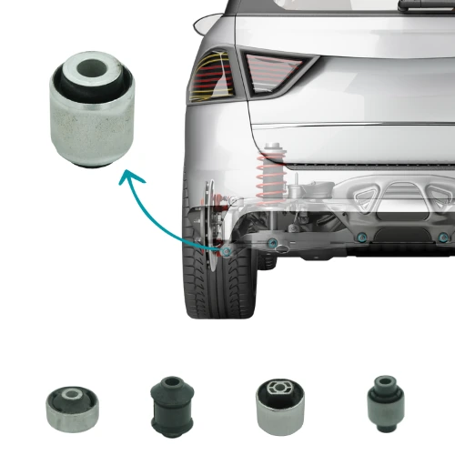 Rubber-to-metal bushings are manufactured through fully integrated in-house processes, including mold design, surface preparation, sandblasting, chemical bonding, and controlled vulcanization. Stiffness characteristics and damping behavior are engineered according to vehicle-specific requirements. Static, dynamic, and durability tests are conducted internally to validate long-term performance under cyclic loads and environmental exposure.