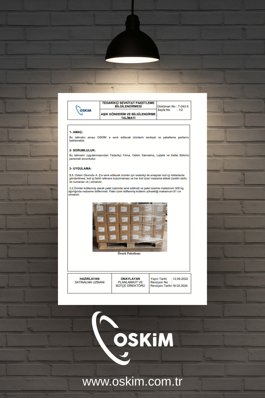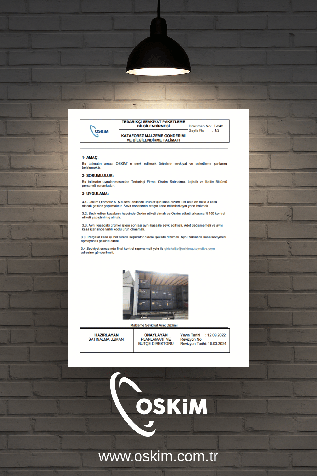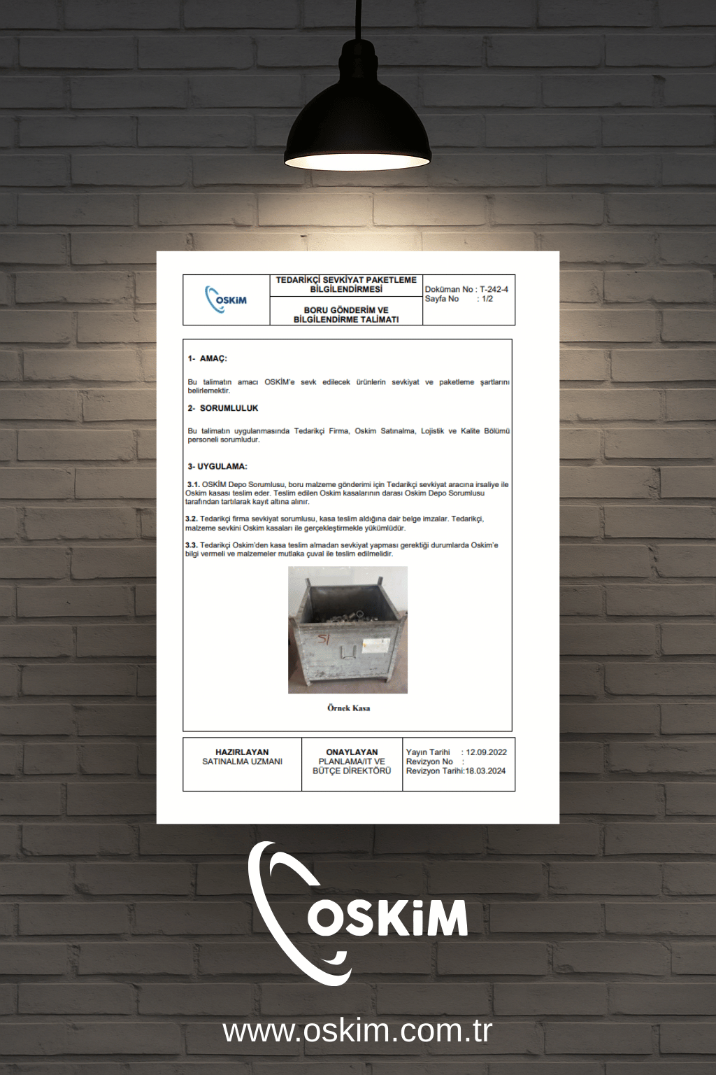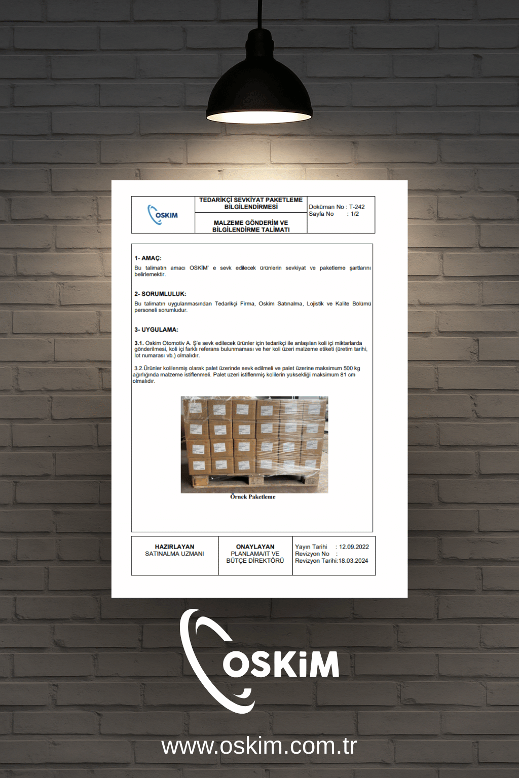 MALZEME GÖNDERİMİ VE BİLGİ TALİMATLARI