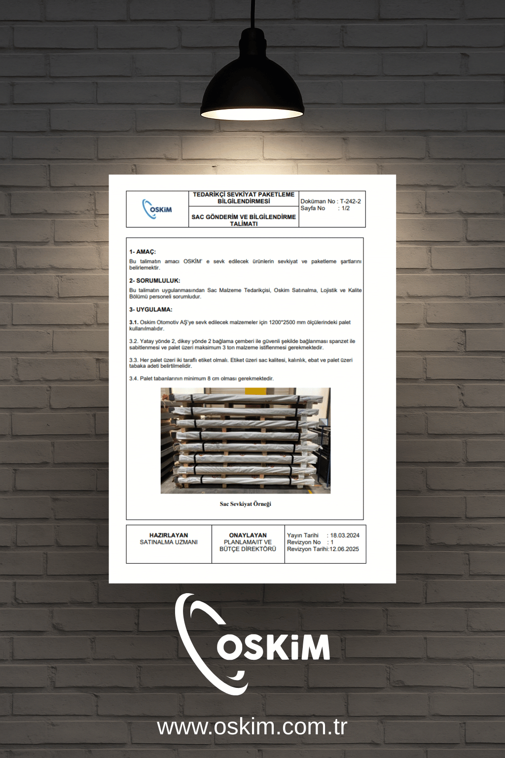 SAĞLAM METAL LEVHA NAKLİYESİ VE BİLDİRİM TALİMATLARI