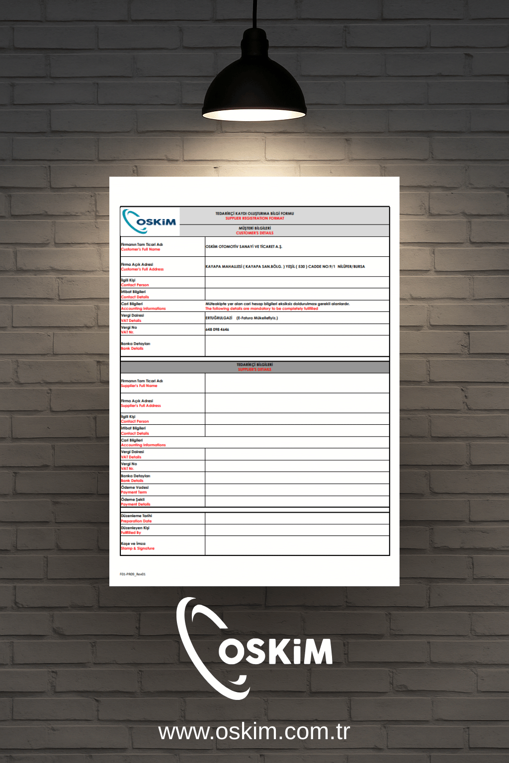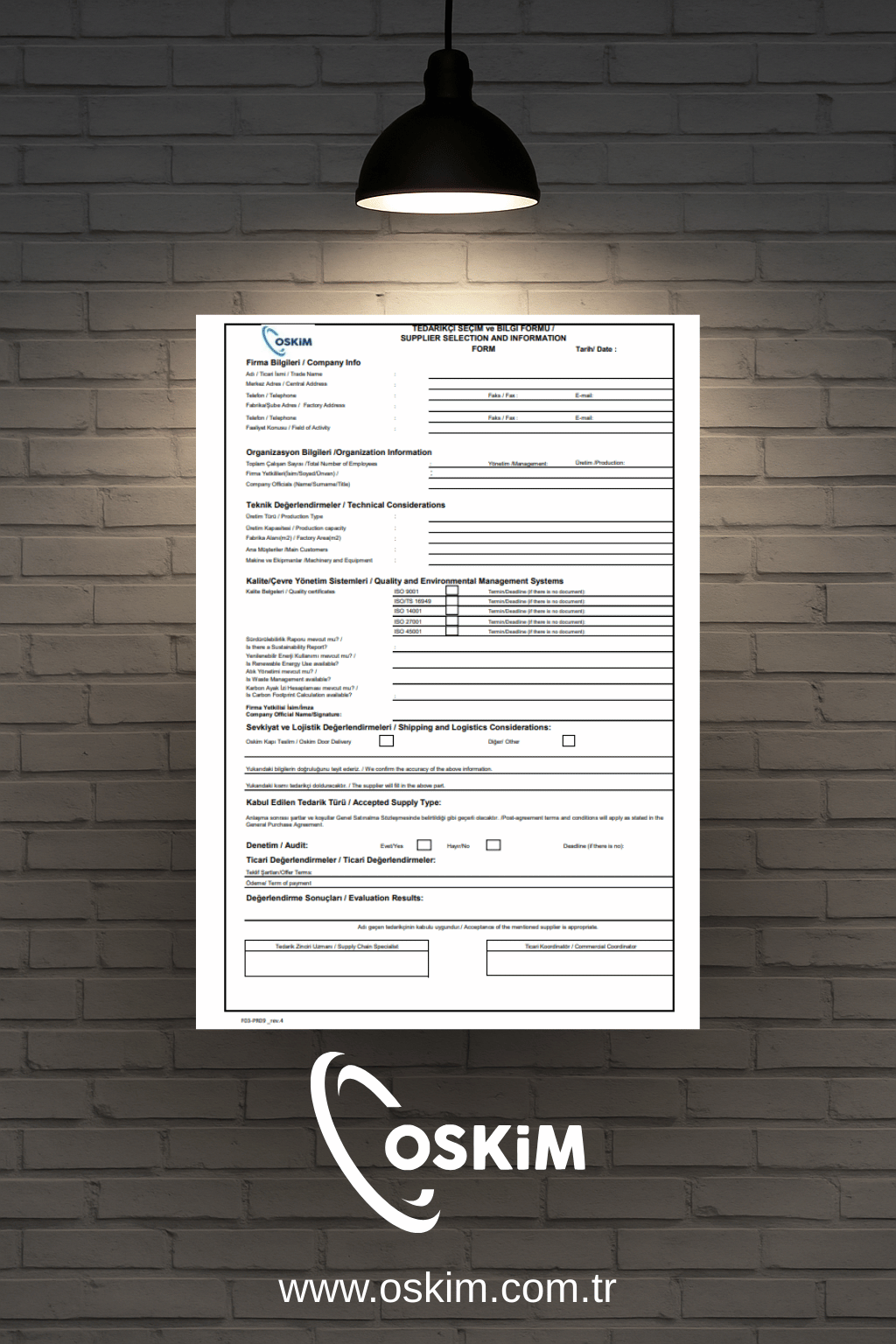 TEDARİKÇİ SEÇİMİ VE BİLGİ FORMU